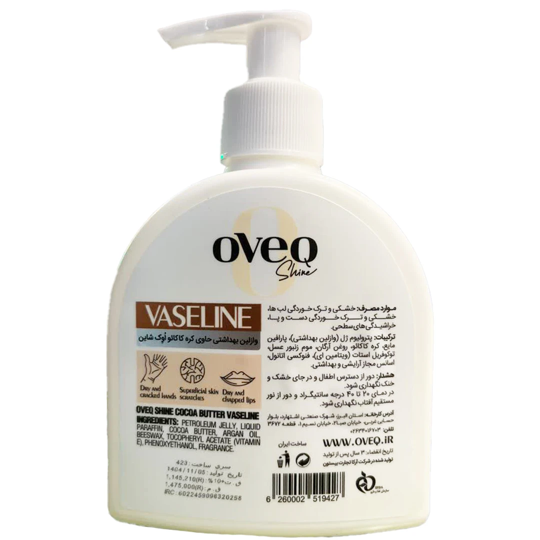 هشدار مصرفمقدار مناسبی از وازلین بهداشتی حاوی کره کاکائو اوک شاین را روی پوست تمیز و خشک بمالید و بهآرامی ماساژ دهید تا پخش شود. در صورت نیاز، مصرف را در طول روز تکرار کنید. برای لبها، لایه نازکی استفاده شود و در صورت خشکی شدید، شبها قبل از خواب نیز قابل استفاده است.