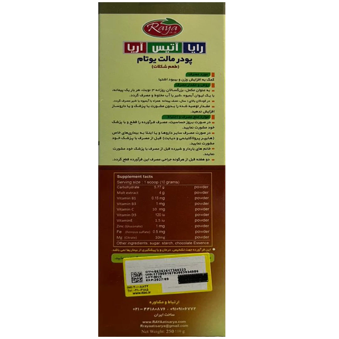 موارد مصرفافزایش انرژی، بهبود اشتها و تقویت عمومی بدن با طعم لذیذ شکلات برای کودکان و بزرگسالان.